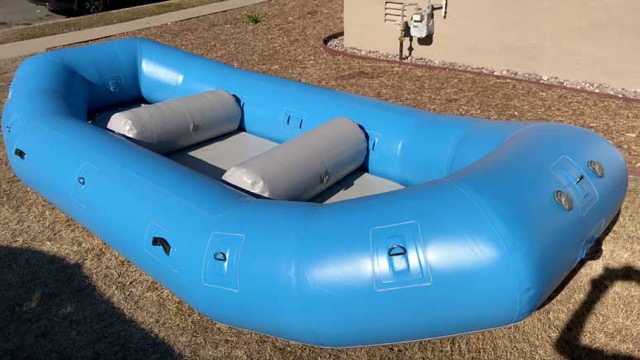 Some rafts are in stock. Older used models or blems may be available at discounted rates. Standard colors are blue or gray (though other colors may be available using a lighter 2000D PVC material). Prices below indicate drop-stitch floor. [I-beam floor reduces cost by ~$200]. If interested, please inquire .